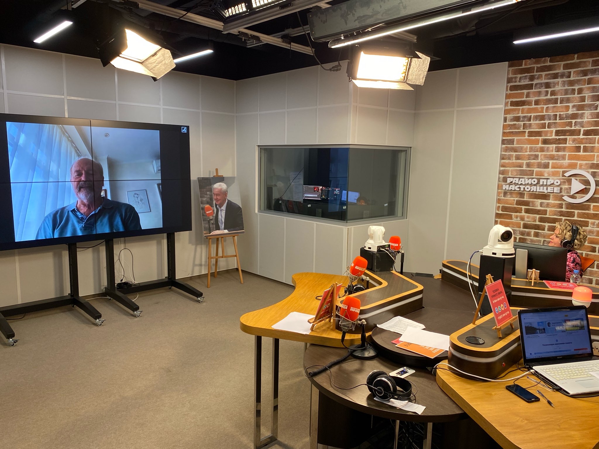 Эфир на радиостанции «Комсомольская правда». Михаил Антонов, Владимир Хотиненко и Юлия Серебрянская